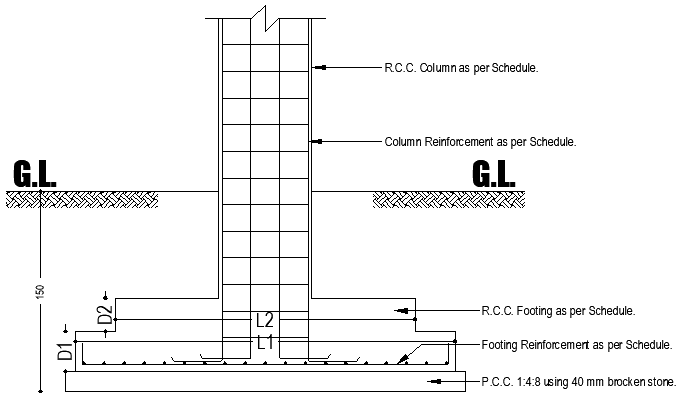 Footing detail lintel beam of kadavoor church details are given in this 2D Autocad DWG drawing file. In this drawing model footing reinforcement section is given. RCC column is given as per schedule, column reinforcement, RCC footing, footing reinforcement and PCC is 1:4:8 with 40mm broken stone are provided. Download the 2D Autocad DWG drawing file. Thank you for downloading the 2D AutoCAD DWG drawing file and other CAD program files from our website.