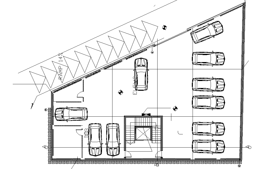 Basement detail drawing presented in this AutoCAD file. this file consists of car parking and services and staircase detail given with dimensions, and area specifications also. this can be used by architects and engineers. Download this 2d AutoCAD drawing file.