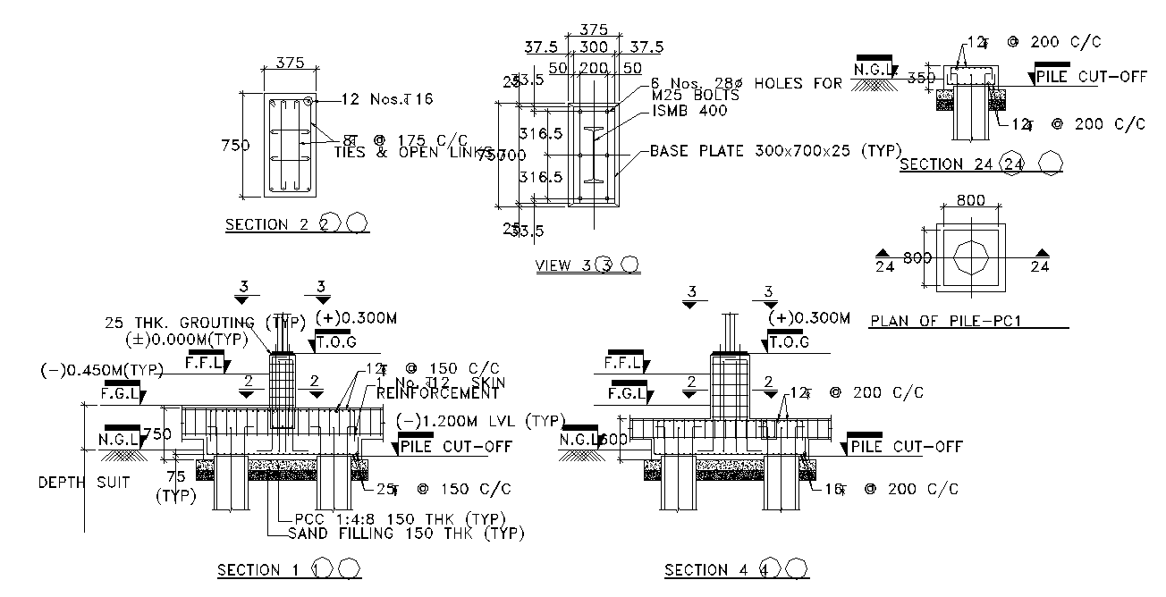 Reinforcement detail of Pile foundation of Falling film evaporator. Download AuotCAD DWg file.