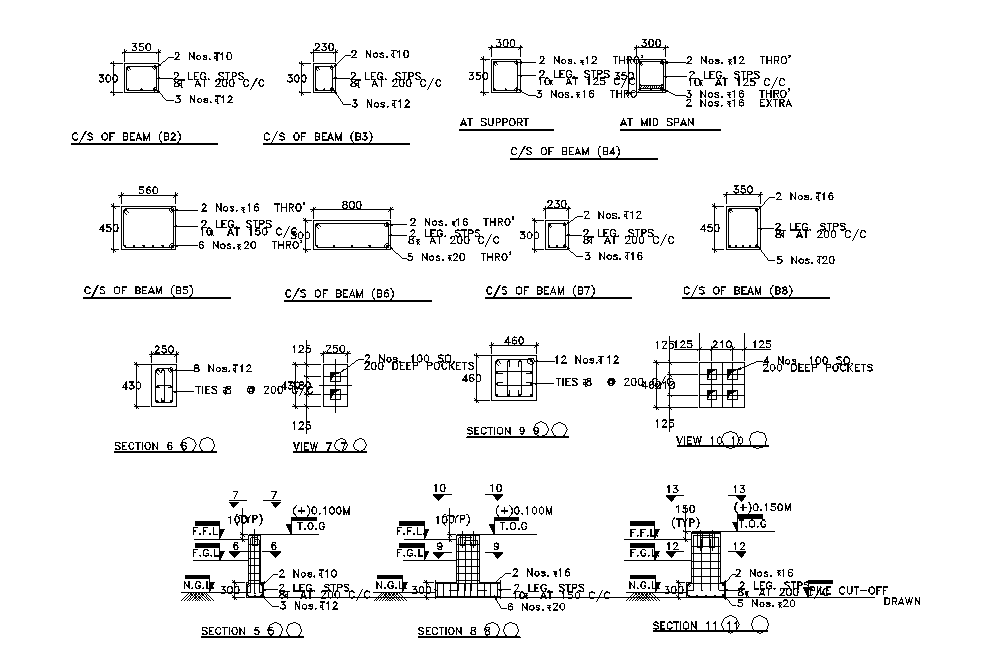 AutoCAD DWG of cross sectional and reinforcement detail of Beam of Falling film evaporator.