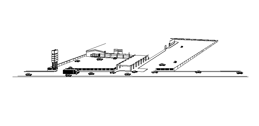 The Industrial building 2d isometric elevation design that shows steel building design, wide vehicle parking space and out side transportation road. Thank you for downloading the AutoCAD file and other CAD program from our website.