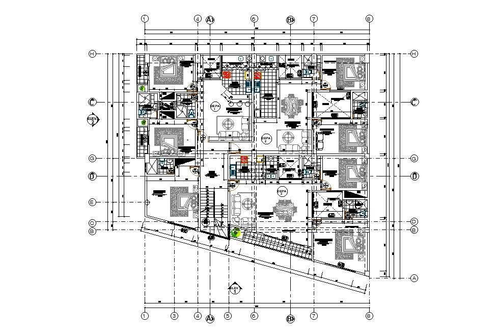 15x19m Amazing plan of residential building is given in this 2D Autocad DWG drawing file. Download the 2D Autocad DWG drawing file.