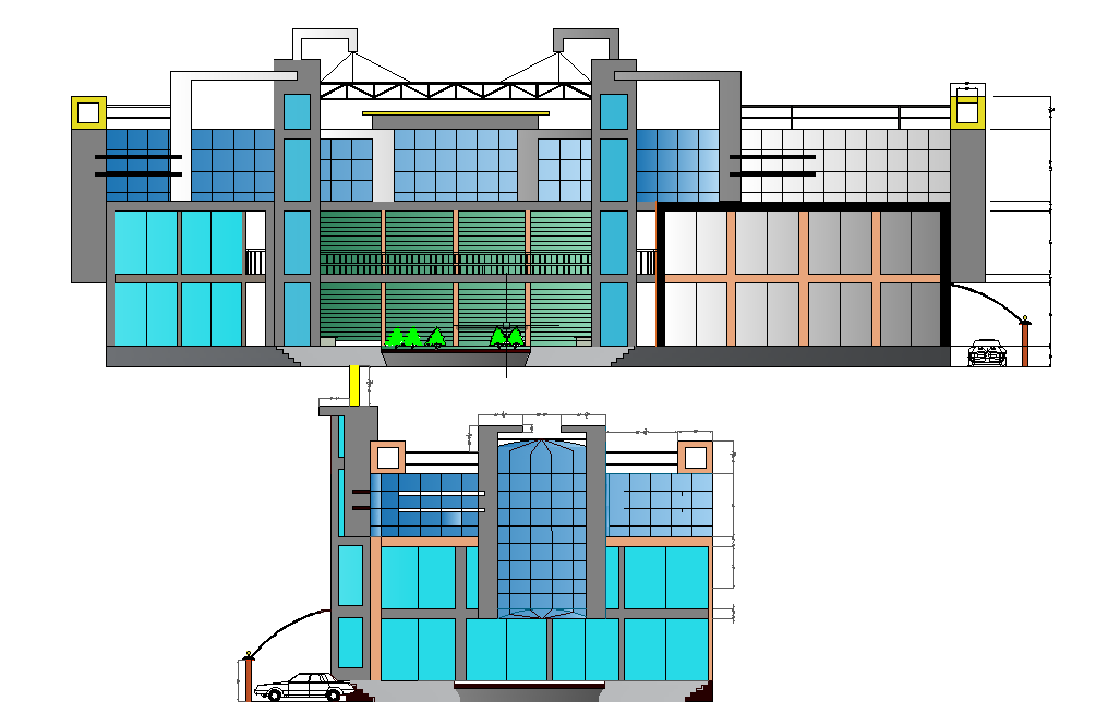 100’x52’ Business centre elevation is given in this 2D Autocad DWG drawing file.