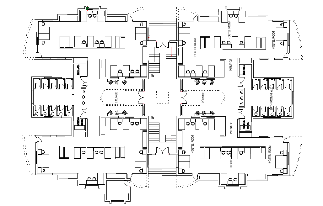 Plan of the hostel building is given in this Autocad drawing file.Download the 2D Autocad DWG drawing file.