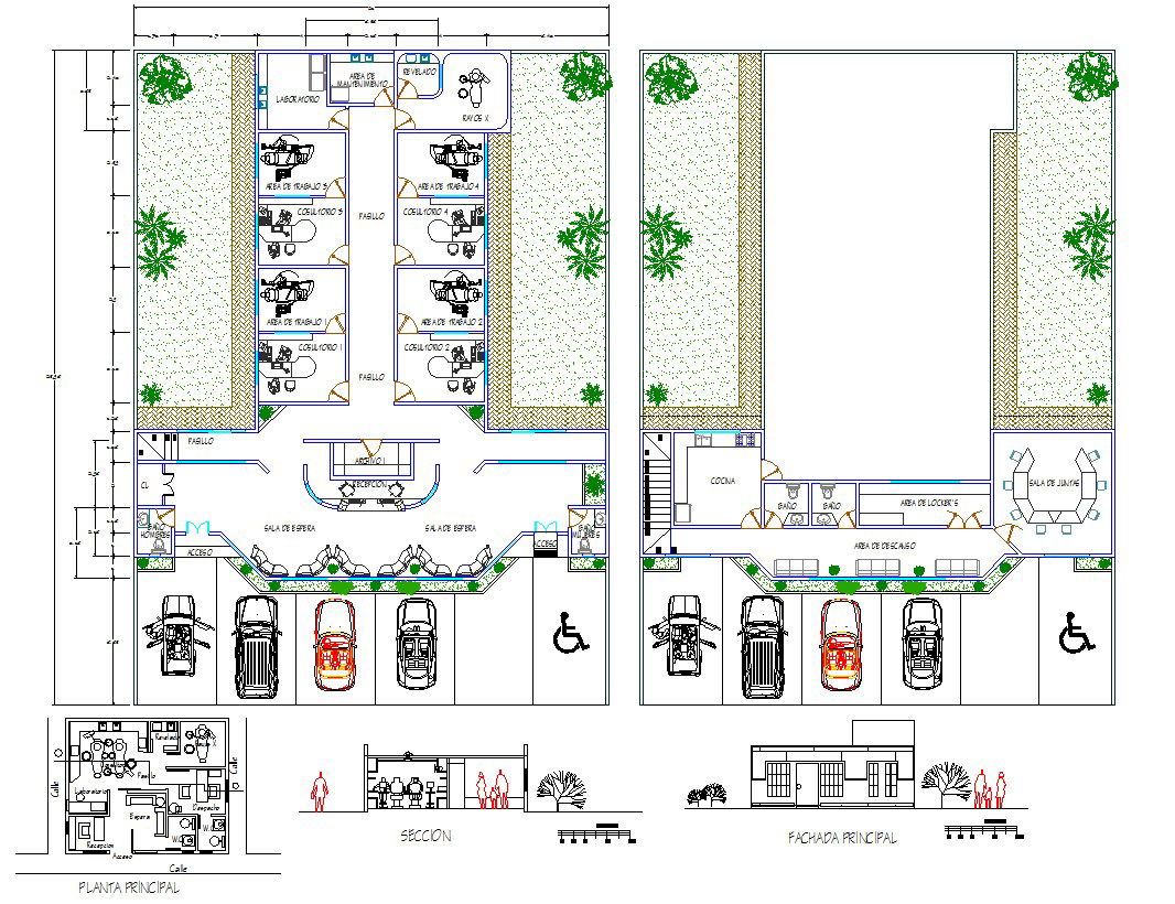 Hospital architecture design. Hospital Project Detail in the Lay-out with elevation.