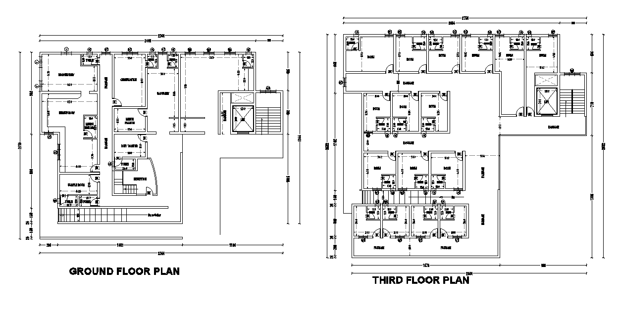 Ground floor and third floor plan of the hospital building is given in this 2D Autocad DWG drawing file. Sample room, duty doctor, minor plaster, micro biology, hematology, biochemistry, casuality and observation room are provided at the ground floor plan. At third floor, Passage and patients room with attached toilets are provided. For more details download the 2D Autocad DWG drawing file. Thank you for downloading the 2D AutoCAD DWG drawing file and other CAD program files from our website.