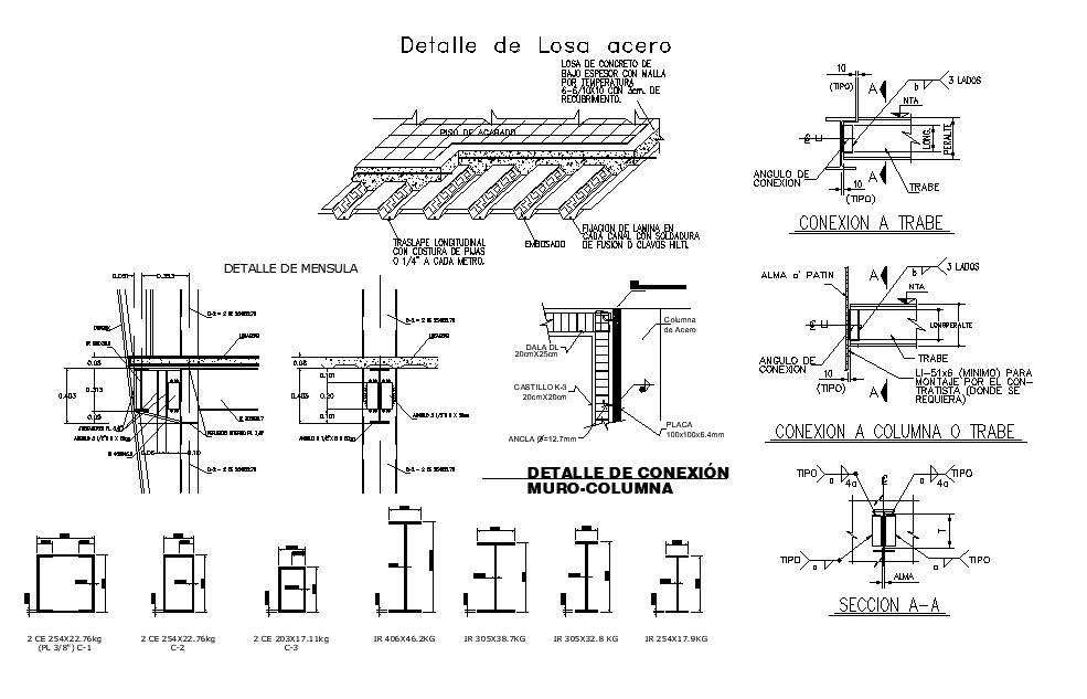 Section view of detalle de conexion muro columna is give in this 2D Autocad DWG drawing file. Detalle de losa acero is given clearly given in this autocad file. The size of column and measurements are given. For more detail download the 2D Autocad file. Thank you for downloading the Autocad file and other CAD program files from our website.