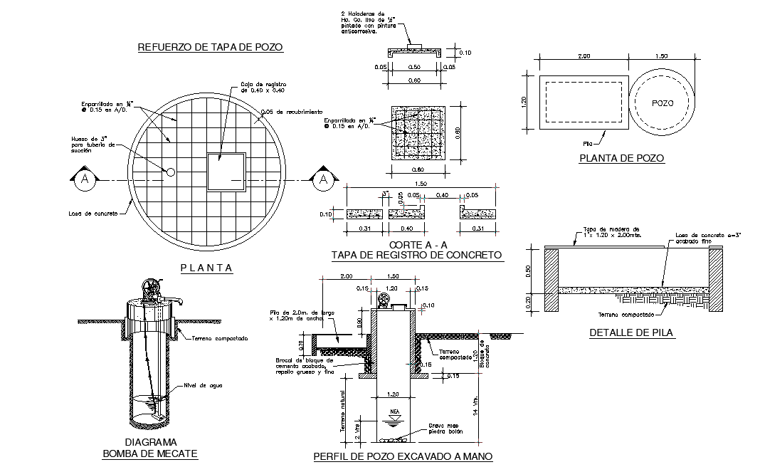 Perfile de pozo excavaido a mano details are given in this 2D Autocad DWG drawing model. It includes planta, planta d pozo, detail de pila and corte are mentioned clearly in this drawing file. Other details are given in this 2D Autocad DWG drawing file. Thank you for downloading the Autocad file and other CAD program files from our website.