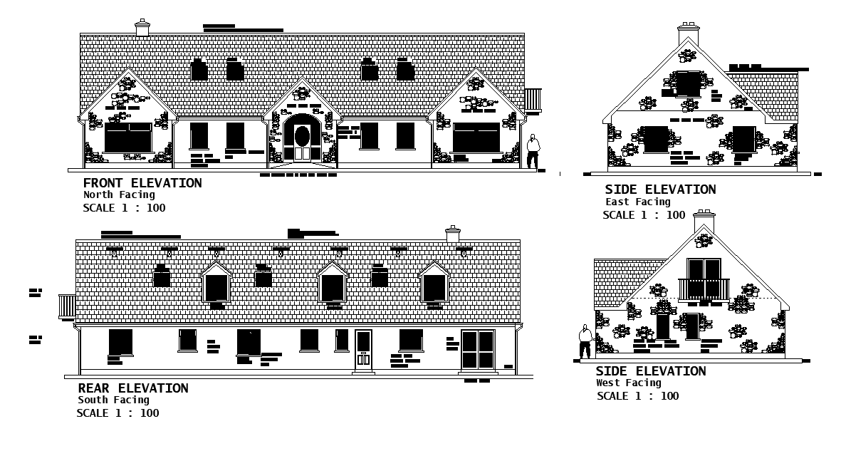 Rear elevation of house plan is given in this 2D Autocad DWG drawing file. In this drawing front elevation and side elevation were given. Roof, chimney, doors and windows are mentioned in this drawing model. Download the 2D Autocad DWG drawing file. Thank you for downloading the Autocad file and other CAD program files from our website.