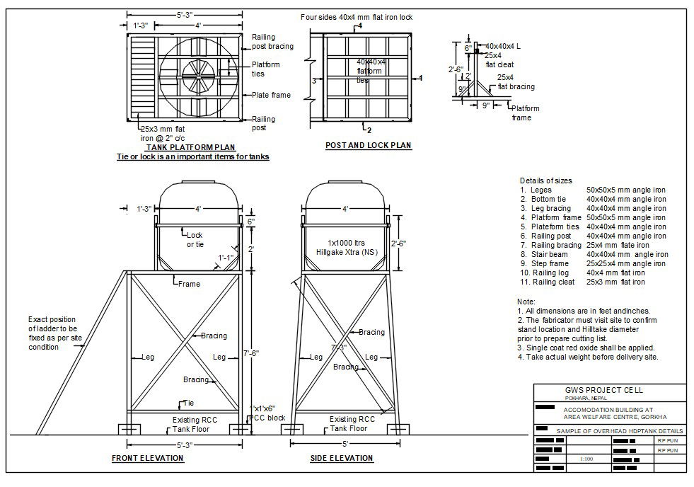 Water Tank Stand CAD Drawing for Structural Design and Planning