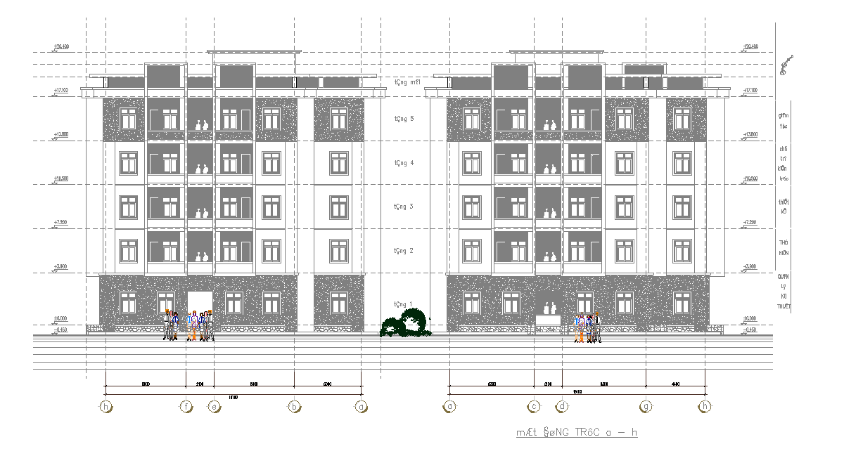 Elevation of the apartment building is given in this 2D Autocad DWG drawing file. Download the 2D Autocad DWG file.