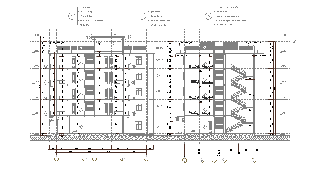 Elevation of the G+4 apartment building is given in the form of 2D Autocad DWG drawing file.