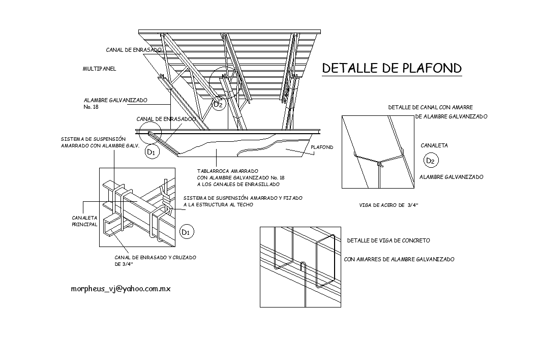 Detalled de plafond is given in the form of 2D Autocad DWG drawing file. Channel section details are given in this model. Welding details are given. Download the 2D Autocad DWG drawing file. Thank you for downloading the Autocad file and other CAD program files from our website.