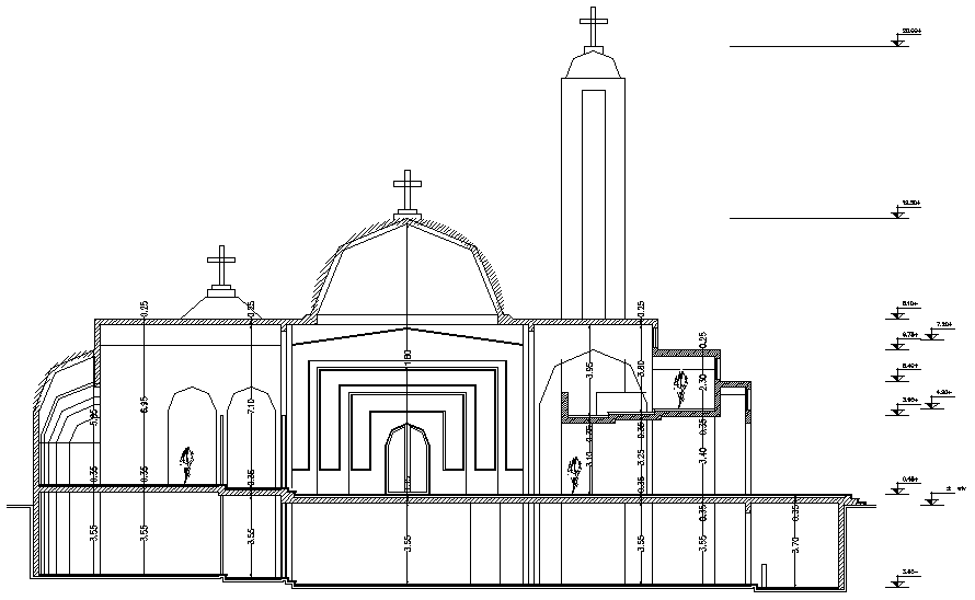 Front elevation of rosol church is given in this Autocad drawing file. Download the 2D Autocad DWG drawing file.