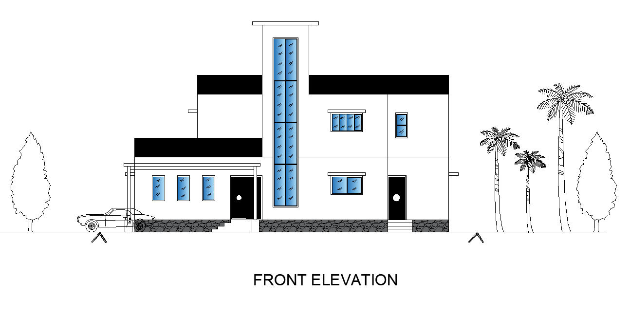 The modern concept residence house builing front elevation design that shows its a 2 story floor level building model design also has glass door and window marking with using AutoCAD hatching design. Thank you for downloading the AutoCAD file and other CAD program files from our website.