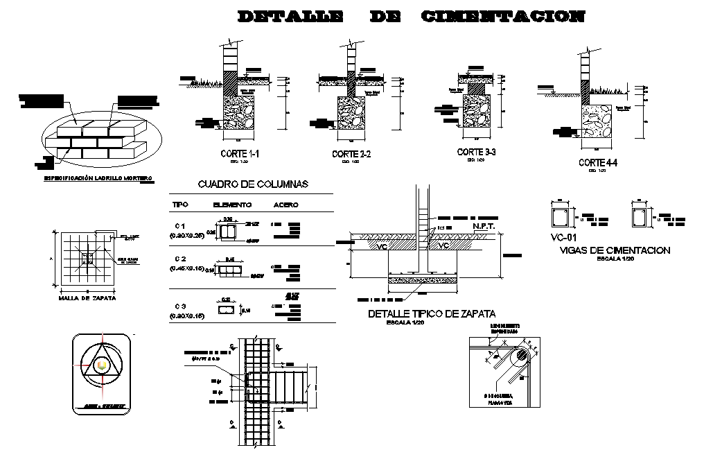 Section of column details of the residential building is given in this 2D Autocad DWG drawing file. Detail of tipico de Zapata, vigas de cimentacion, cuadro de columns, especificacion ladrillo mortero and other details are given in this drawing. Download the 2D AutoCAD DWG drawing file. Thank you for downloading the 2D AutoCAD DWG drawing file.
