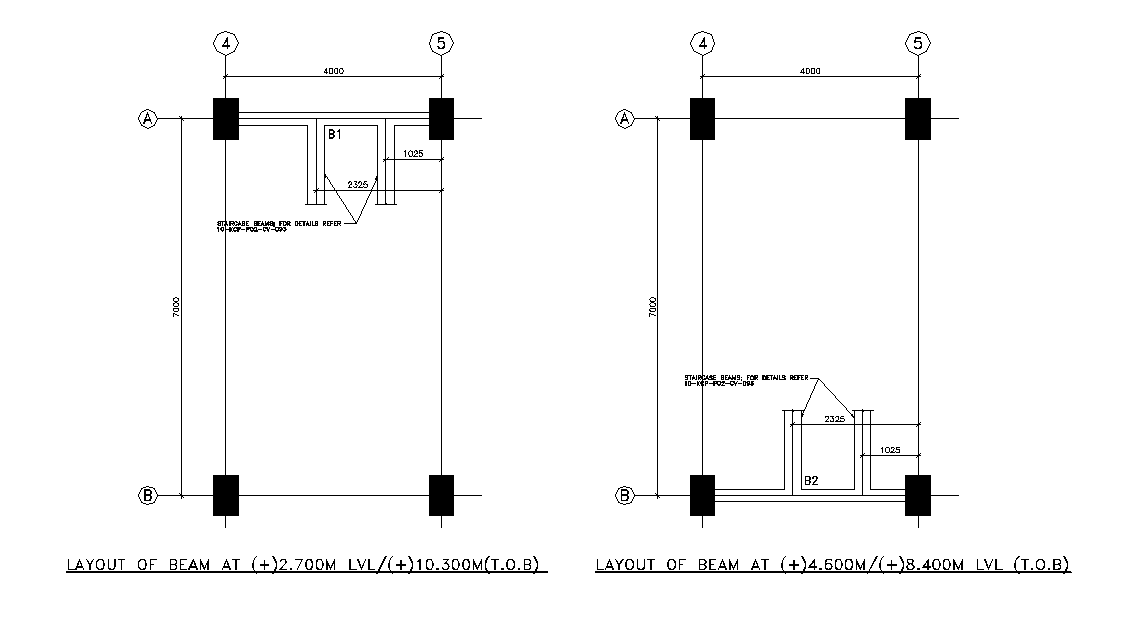 Layout of staircase Beam. Download AutoCAD DWG file.