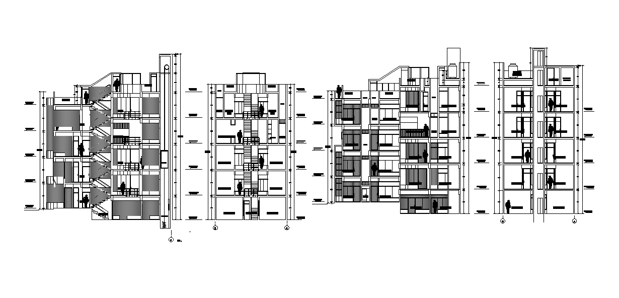 Corporate Office Building Sectional Elevation Drawing DWG File