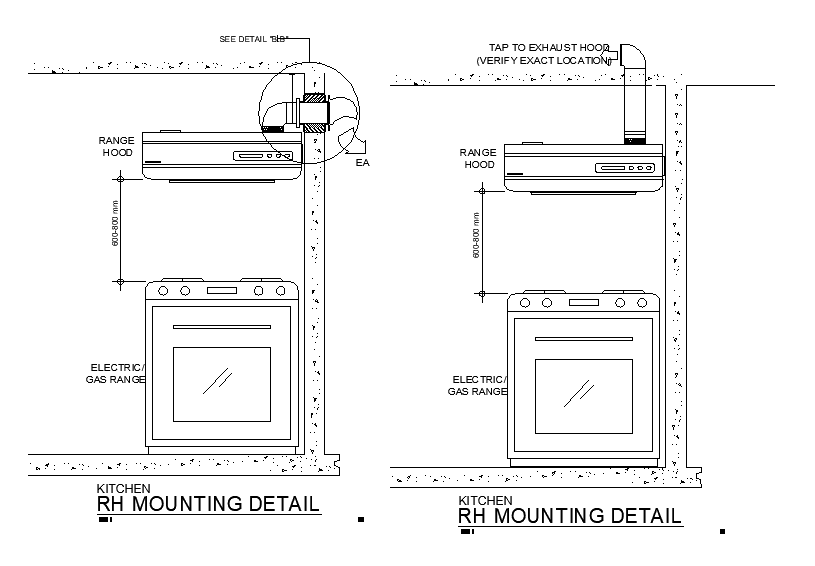 Kitchen staves mounting detail drawing presented in this AutoCAD file. Download the AutoCAD file.