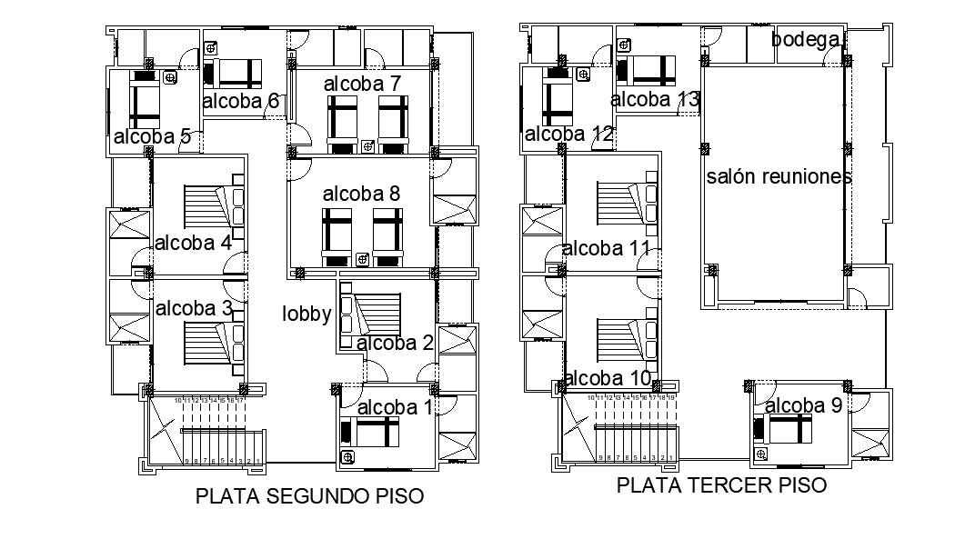 Residence Hotel Bedrooms Floor Plan AutoCAD Drawing DWG File