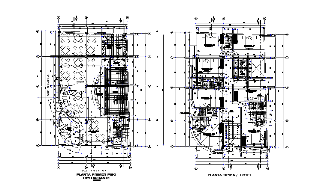 Plan of first floor and second floor of restaurants are given in this 2D Autocad drawing file. Download the 2D Autocad DWG drawig file.