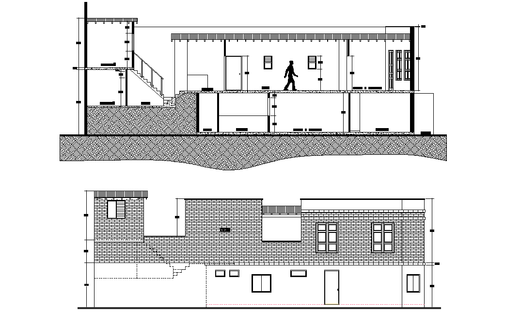 An elevation of the home building is given in the Autocad 2D DWG file. Download the 2D Autocad drawing file.