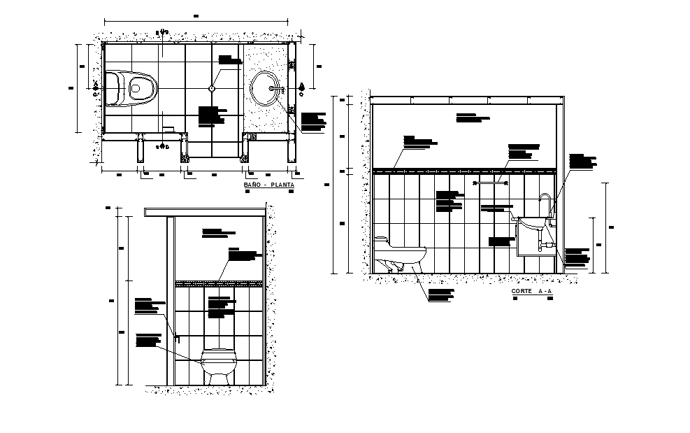 The toilet plan with front side section CAD drawing which consist sanitary ware installation such as wash basin and toilet. draining piping, plumbing piping and all measurement detail. Thank you for downloading the AutoCAD file and other CAD program from our website.