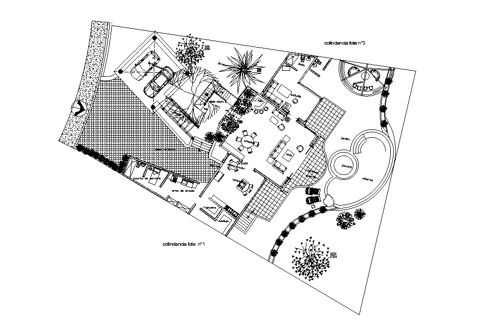 the architecture club house layout plan AutoCAD drawing that shows drawing room, swimming pool, reception area, counter bar, kitchen, 2 big car parking porch, garden and landscaping design. Thank you for downloading AutoCAD drawing DWG file from the our website.