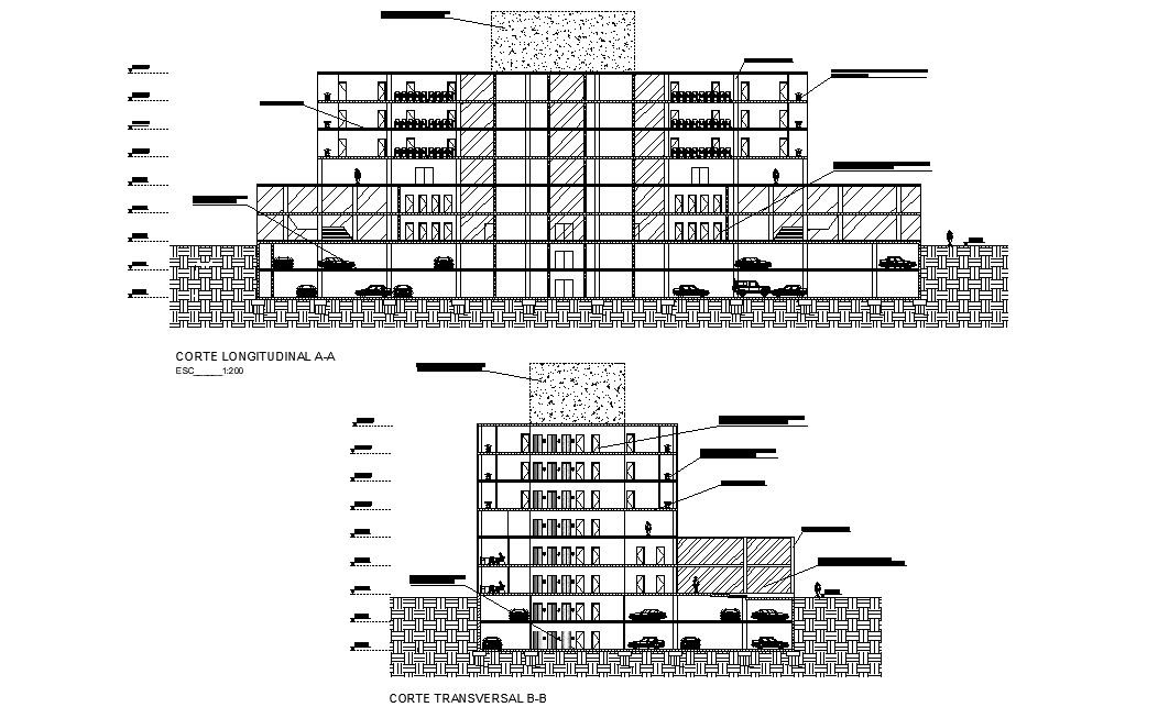 Section of the corporate building is given in this 2D Autocad DWG drawing file. This is G+7 corporate building. At base 1 and ground floor is provided for the car parking. This car parking is provided for the employees. Doors and windows are provided with glass material. Lift is provided for the all floor. Download the 2D Autocad drawing file. Thank you downloading the 2D Autocad DWG drawing file and other CAD program files from our website.