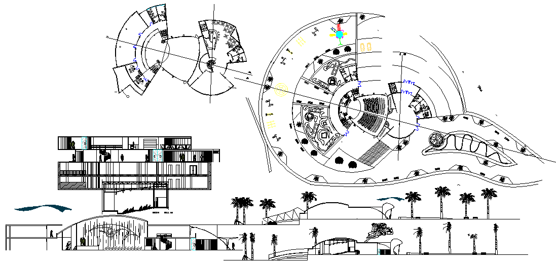 Theater and Landscape Detail In Autocad File & Garden space, Elevation & Plan detail. front side section detail include DWG file.