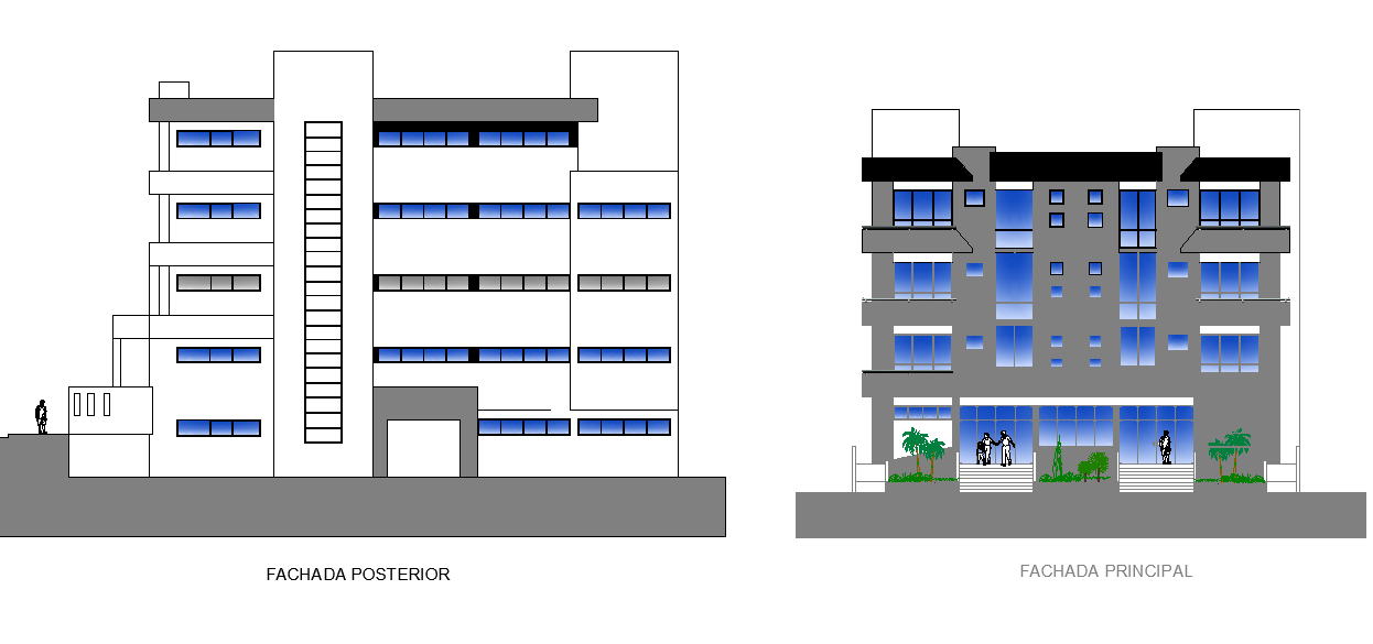 G+3 hospital building elevation is given in this 2D Autocad drawing file. Posterior elevation detail is given. Glass material is provided for windows, ventilation and balcony. Other details are given in this drawing model. Download the 2D Autocad drawing file. Thank you downloading the 2D AutoCAD DWG drawing file and other CAD program files from our website.