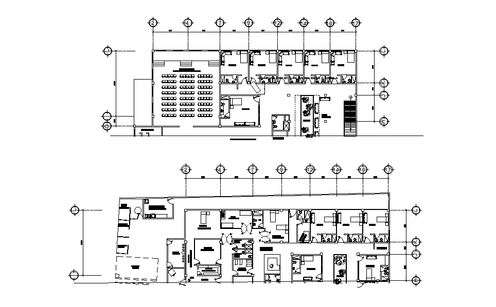 Detailed 2D AutoCAD DWG drawing of a nurse station and hospital building with complete floor plan layouts, room arrangements, and structural details. Perfect for architects, interior designers, and planners seeking accurate CAD references for healthcare facility design projects.