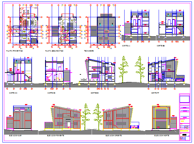 This is a Single family residential house design drawing with ground floor,first floor and second floor plan with furniture layout drawing,Electrical drawing, Elevation all side design and section drawing detail with stair section drawing detail in this auto cad file.