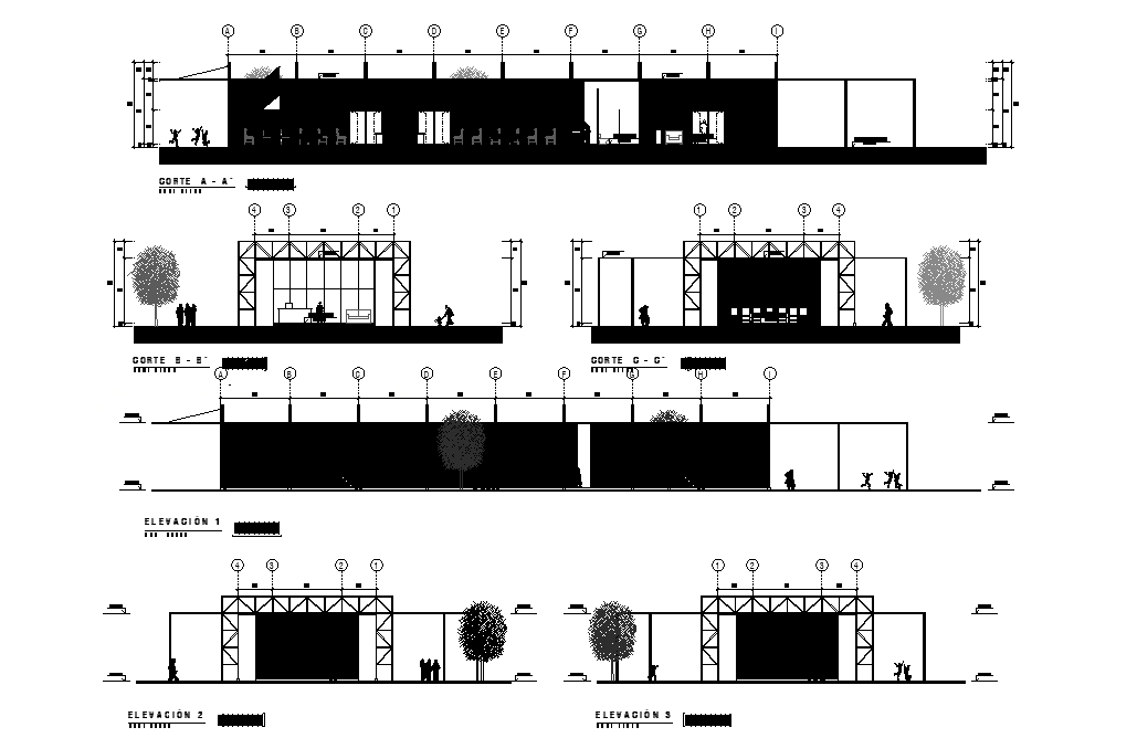 Elevation and section of tourist cultural complex building is given in this 2D Autocad DWG drawing file.Download the 2D Autocad DWG drawing file.