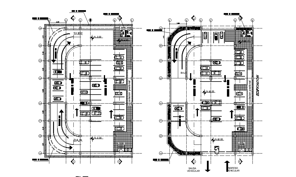 Sports centre of car parking is given in this 2D Autocad DWG drawing file. Vehicle entry, departure, pedestrian circulation, ventilation chamber, car access lane, 10% of the slope, toilet for male and female and other details are given in this drawing model. Download the 2D Autocad drawing file. Thank you for downloading the 2D AutoCAD DWG drawing file and other CAD program files from our website.