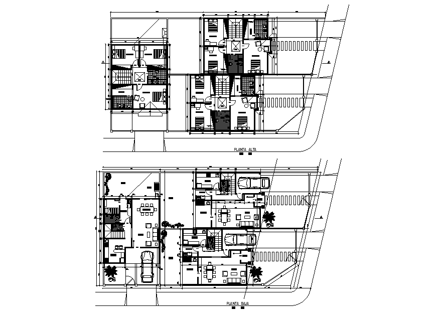 34x17 house site plans is given in this 2D Autocad DWG drawing file. Three houses are given. This is duplex house plan. This plan consists of kitchen, dining , living hall, study room and patio are given. Each house are given with 4 bedrooms with bathroom. Car parking is provided for the each house. Download the 2D Autocad drawing file. Thank you downloading the 2D AutoCAD DWG drawing file and other CAD program files from our website.