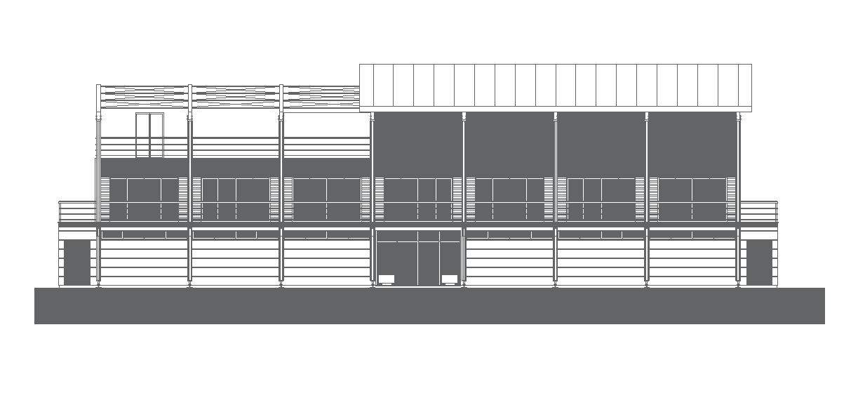 Front elevation of the airport terminal is given this Autocad 2D DWG drawing file. Download the Autocad drawing file.