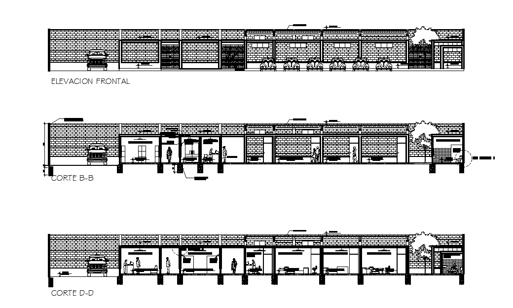 Front elevation of the health centre is given in this 2D Autocad DWG drawing file. Download the Autocad drawing file.