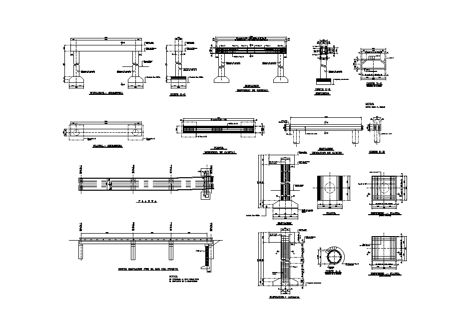 Elevation and section details of the column and beams are given in this 2D Autocad DWG drawing file. In this reinforcement and head reinforcement details are given in this model. Elevation cut by the bridge axle is given in this 2D Autocad file. Cable location is given. Other details are given in this drawing file. Download the 2D AutoCAD DWG drawing file. Thank you for downloading the 2D AutoCAD DWG drawing file and other CAD program files from our website.