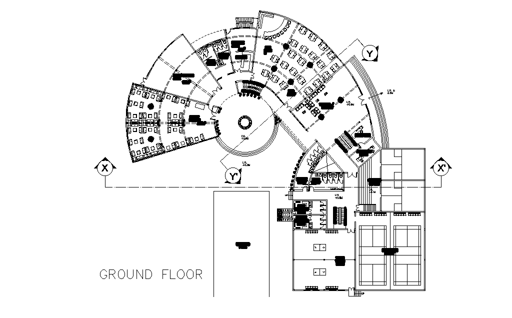 Ground floor plan of the club house is given in this 2D Autocad DWG drawing file. Download the Autocad file.