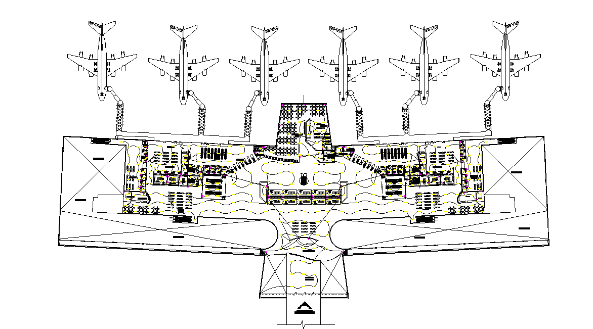 Airport terminal layout is given in this 2D Autocad DWG drawing file. Download now.