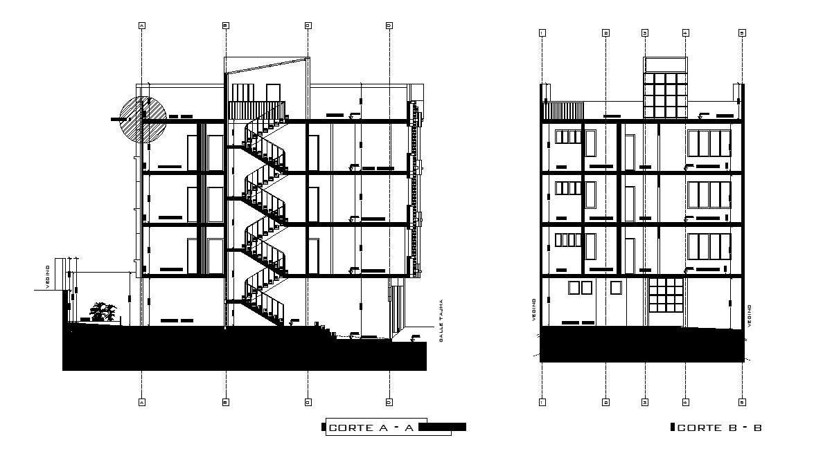 Section view of 30x12m house plan is given in this 2D Autocad DWG drawing file. Download the Autocad file.