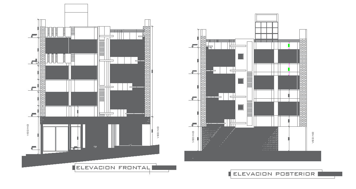 Elevation of the residential building is given in this 2D Autocad dwg drawing file. Download the Autocad file.