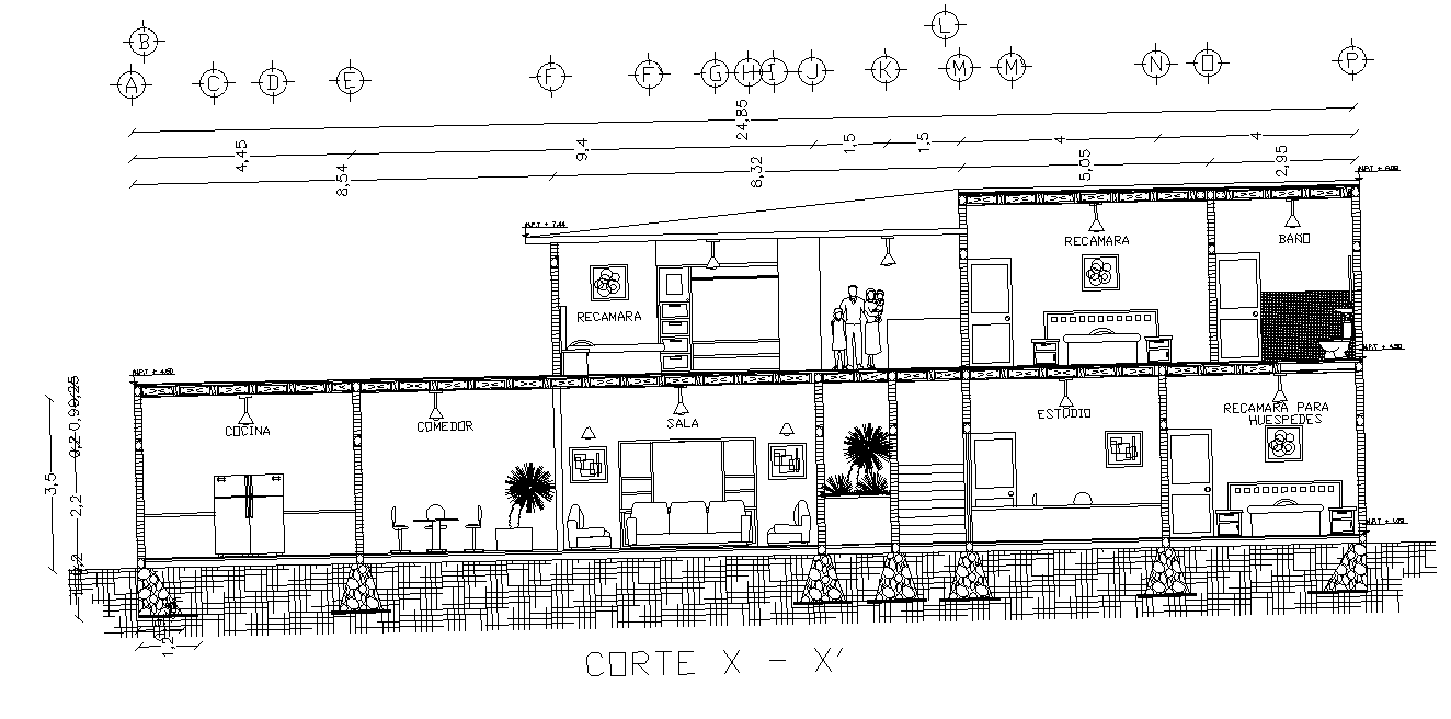 Interior detailed section of the bungalow drawing presented in this AutoCAD file. in this file g+1 architecture of bungalow detail given with furniture blocks and foundation beam-column detail and door window detail given with detailed dimensions and specifications. this can be used by architects and engineers. Download this 2d AutoCAD drawing file.