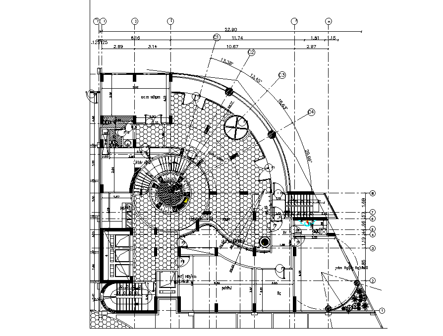 Top floor plan of corporate building drawing provided in this AutoCAD file.. Download this 2d AutoCAD drawing file.
