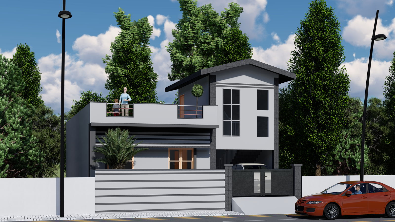 3D tiny home elevation design Revit drawing file is given here. An awesome single-story home elevation design is provided. The front elevation, grey color paint, roof, and balcony design look awesome. This drawing is useful for the people who searching for house elevation ideas, civil engineers, and architects. you can download the Revit file on cadbull.com. Thank you so much for downloading CAD and other CAD program files from our cadbull.com website.