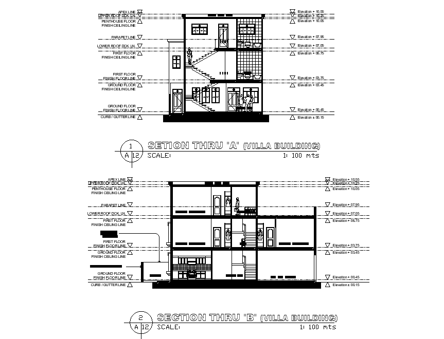 Section of the bungalow detail drawing provided in this AutoCAD file. this file consists of door window detail and staircase detail drawing given with dimensions and specifications given in this file. This can be used by architect students and engineers. Download this 2d AutoCAD drawing file.