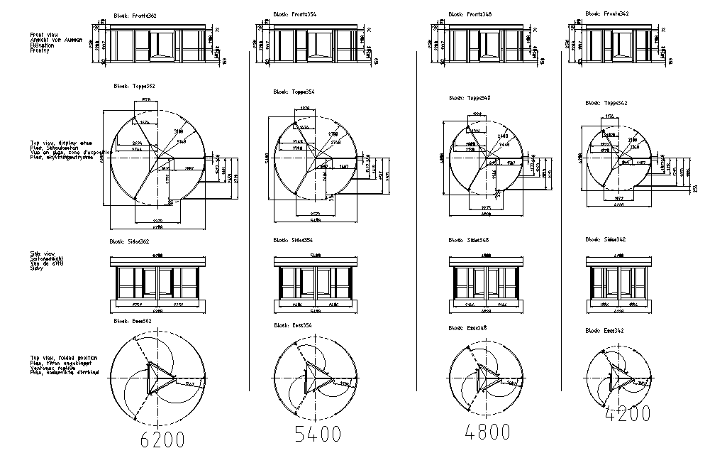 Plan and front view of the elements are available in this Autocad drawing file.  Download the 2D Autocad file.