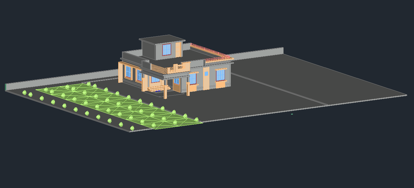 3D view of the house is given in this 2D Autocad drawing file. The size of the plan is 45’x48’. Total built up area of the plan is 2160sqft. This is single floor house plan and exterior design, top room and windows are mentioned in this drawing model. Download the Autocad drawing file. Thank you for downloading the 2D Autocad DWG drawing file and other CAD program files from the website.