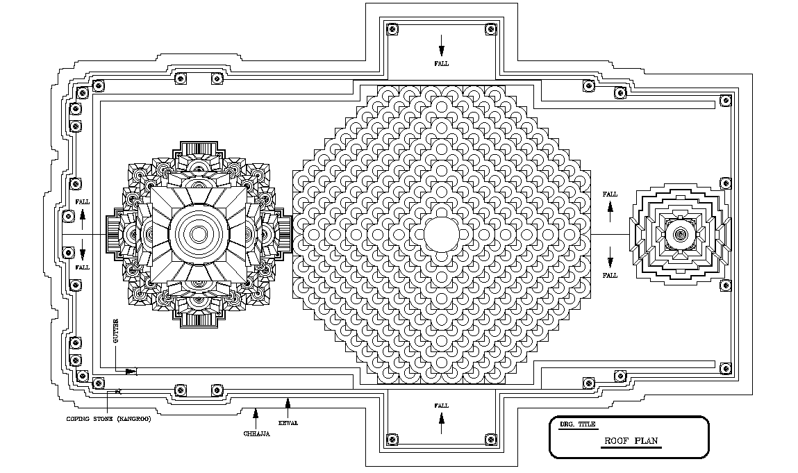The roof plan of the temple detail drawing stated in this AutoCAD file. this file consists of temple architecture with material and slops specifications. this can be used by architects and engineers. Download this 2d AutoCAD drawing file.